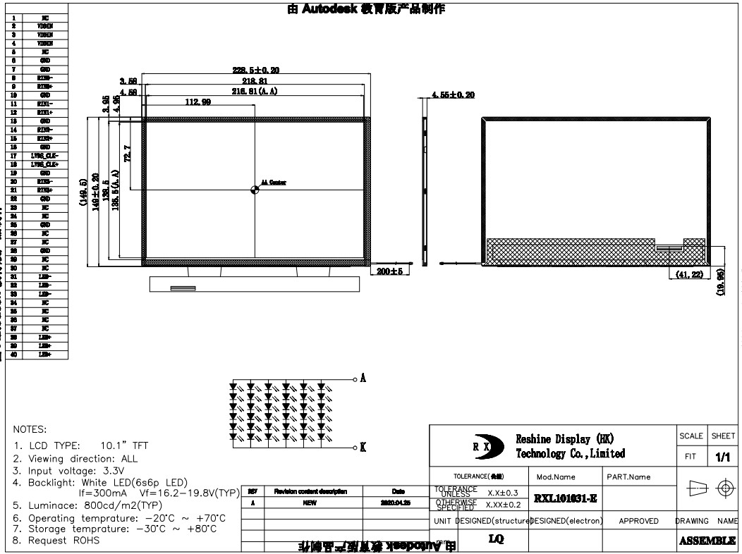 RXL101031-E 10.1 inch 1280X800 IPS High Brightness LCD Display with capacitive touch screen LVDS interface
